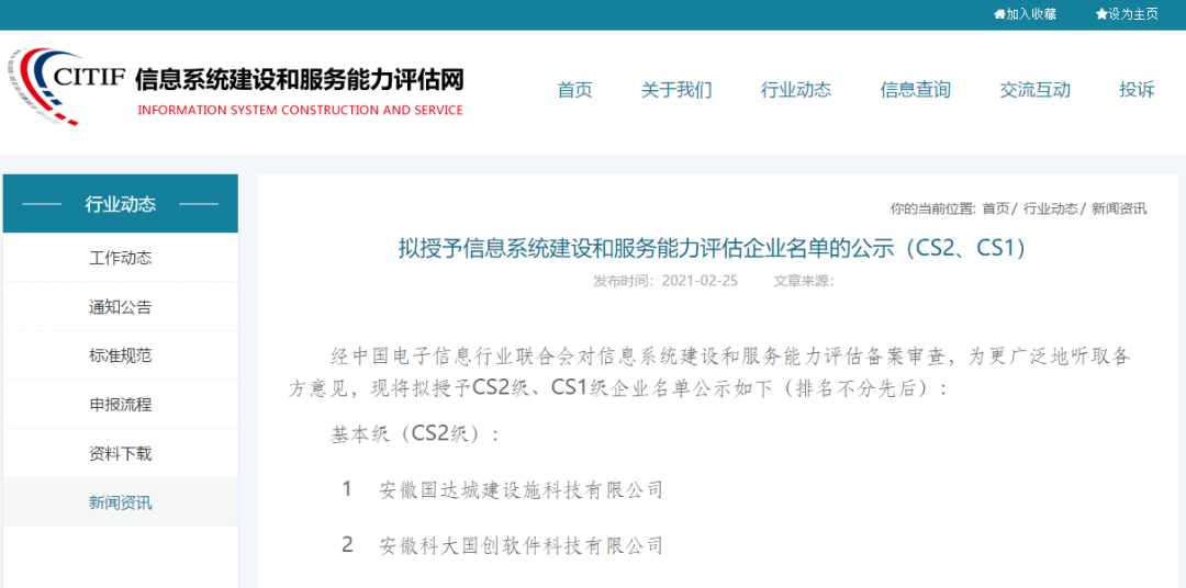 繼2021年1月7日我司入圍“三個一批”的“兩高四新(專精特新)”企業(yè)公示名單,及2021年1月15日第三次成功入圍廣東省2020年第三批高新技術企業(yè)公示名單后,我司再次傳來喜訊,順利通過了信息系統(tǒng)建設和服務能力CS2級的能力評估企業(yè)認定公示,榮獲三喜臨門!