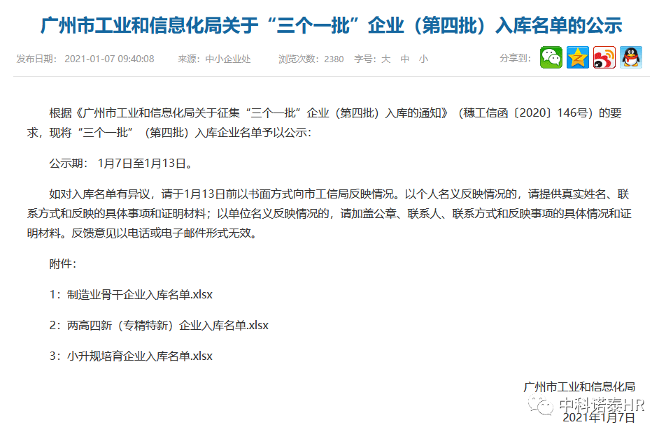為貫徹落實習近平總書記關于粵港澳大灣區(qū)建設重要論述和對廣東、廣州的重要指示精神,聚焦粵港澳大灣區(qū)規(guī)劃綱要,全力推進先進制造業(yè)強市建設,持續(xù)提升廣州市工業(yè)投資強度,促進產(chǎn)業(yè)結構優(yōu)化升級,推動城市產(chǎn)業(yè)高質量發(fā)展。2021年1月7日,廣州市工業(yè)和信息化局將“三個一批”(第四批)入庫企業(yè)名單予以公示,我司廣州中科諾泰技術有限公司成功入圍“三個一批”的“兩高四新(專精特新)”企業(yè)名單。