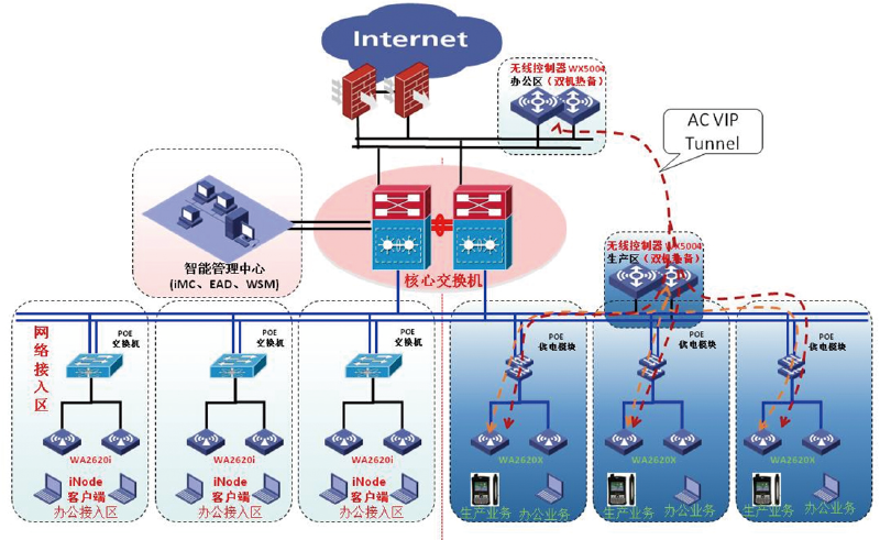 某集團(tuán)企業(yè)根據(jù)國家與行業(yè)對信息化工作也越來越重視:黨的十七大報(bào)告明確提出了“大力推進(jìn)信息化和工業(yè)化融合”的要求;隨著行業(yè)發(fā)展戰(zhàn)略的提出,確定了企業(yè)的發(fā)展戰(zhàn)略和發(fā)展目標(biāo),明確提出要全面提升企業(yè)的科技競爭力、品牌競爭力、管理競爭力和文化競爭力,這一新企業(yè)戰(zhàn)略與目標(biāo)定位對企業(yè)信息化提出了全新的要求。集團(tuán)企業(yè)在統(tǒng)籌考慮業(yè)務(wù)需求和發(fā)展的基礎(chǔ)上,建設(shè)兼容目前廠區(qū)內(nèi)部網(wǎng)絡(luò)架構(gòu)的無線網(wǎng)絡(luò)覆蓋、終端安全準(zhǔn)入管理以及全網(wǎng)設(shè)備綜合管理,并兼顧遠(yuǎn)期發(fā)展目標(biāo),構(gòu)建一個(gè)高效、穩(wěn)定、安全可靠的網(wǎng)絡(luò)綜合管理平臺。